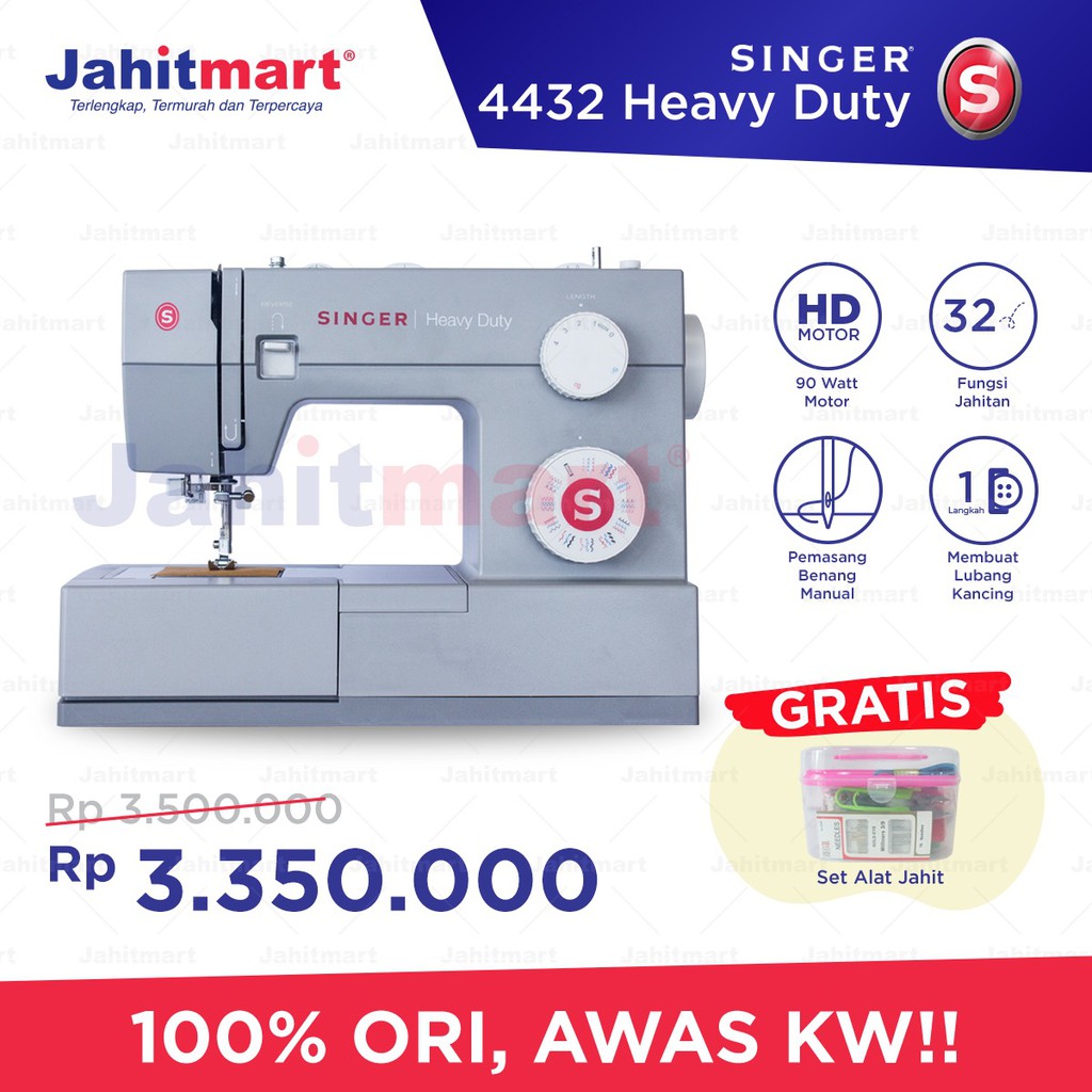 Produk Mesin Jahit SINGER Heavy Duty 4432 ini harganya adalah Rp. 3.350.000,00 dan saat ini lagi Diskon , Produk ini sendiri saat saya tulis Artikel ini sudah dilihat sebanyak 163 kali dan sudah disukai sebanyak 105 kali.
